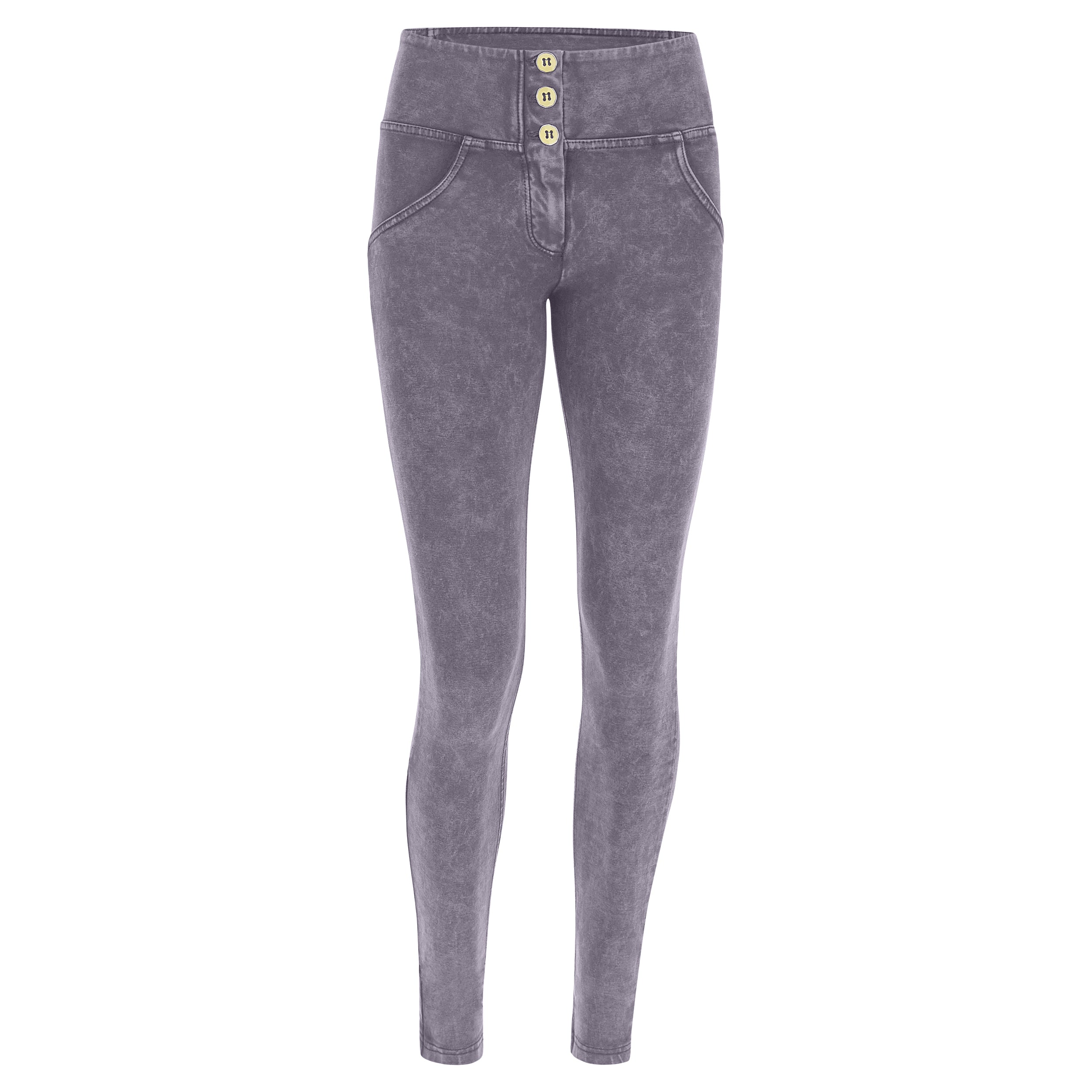 Pantaloni push up della della linea WR.UP® in heavy jersey stretch sostenibile realizzato con cotone organico tinto in capo con effetto bleached. Il modello presenta vita ad altezza media con chiusura frontale a tre bottoni, lunghezza regular e vestibilità skinny che dona una piacevole aderenza alle linee del corpo.