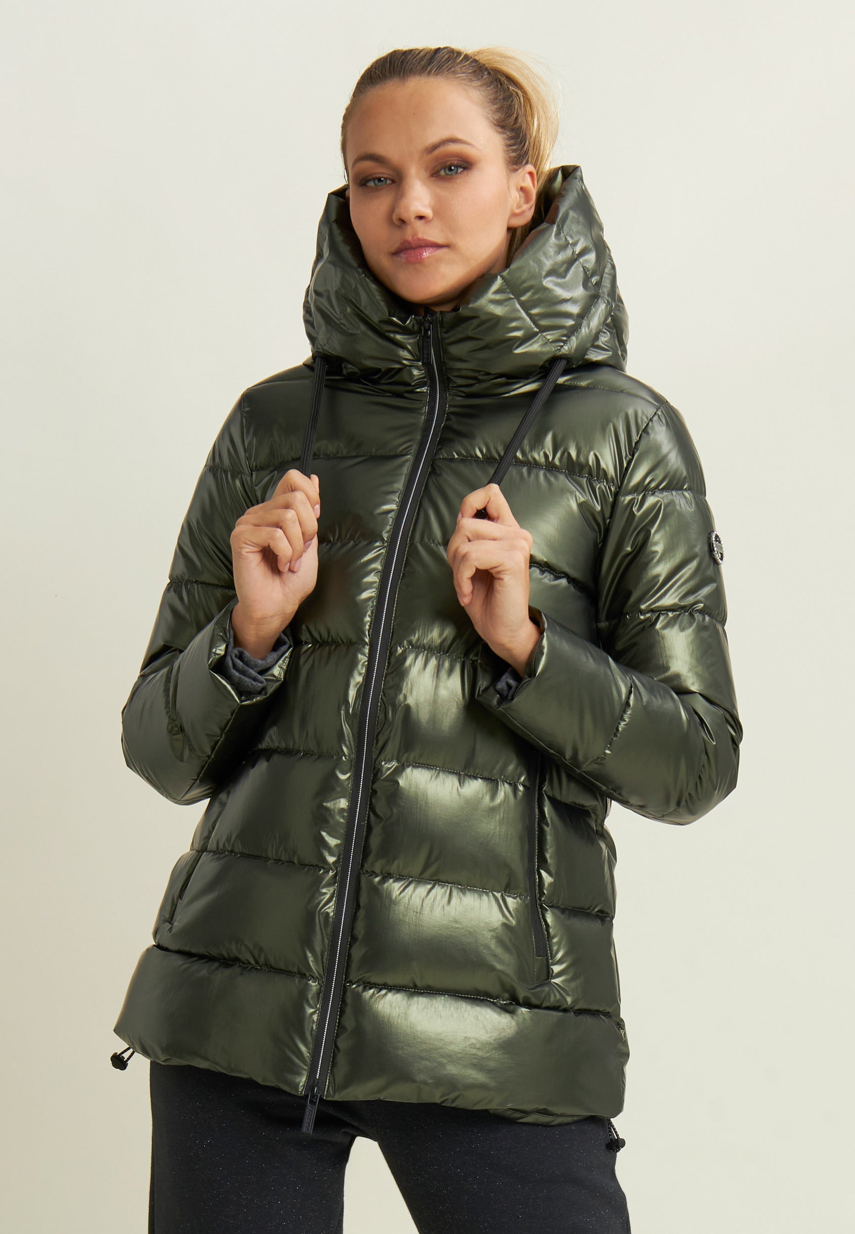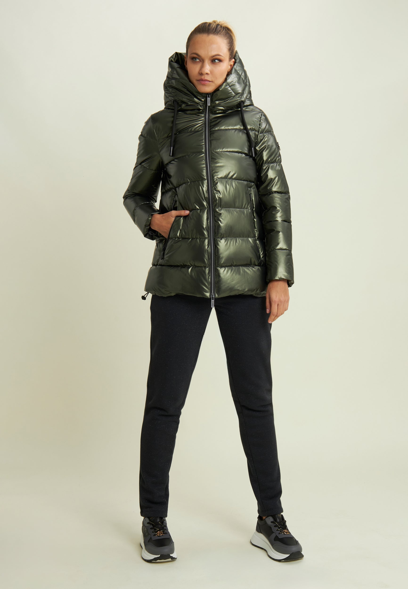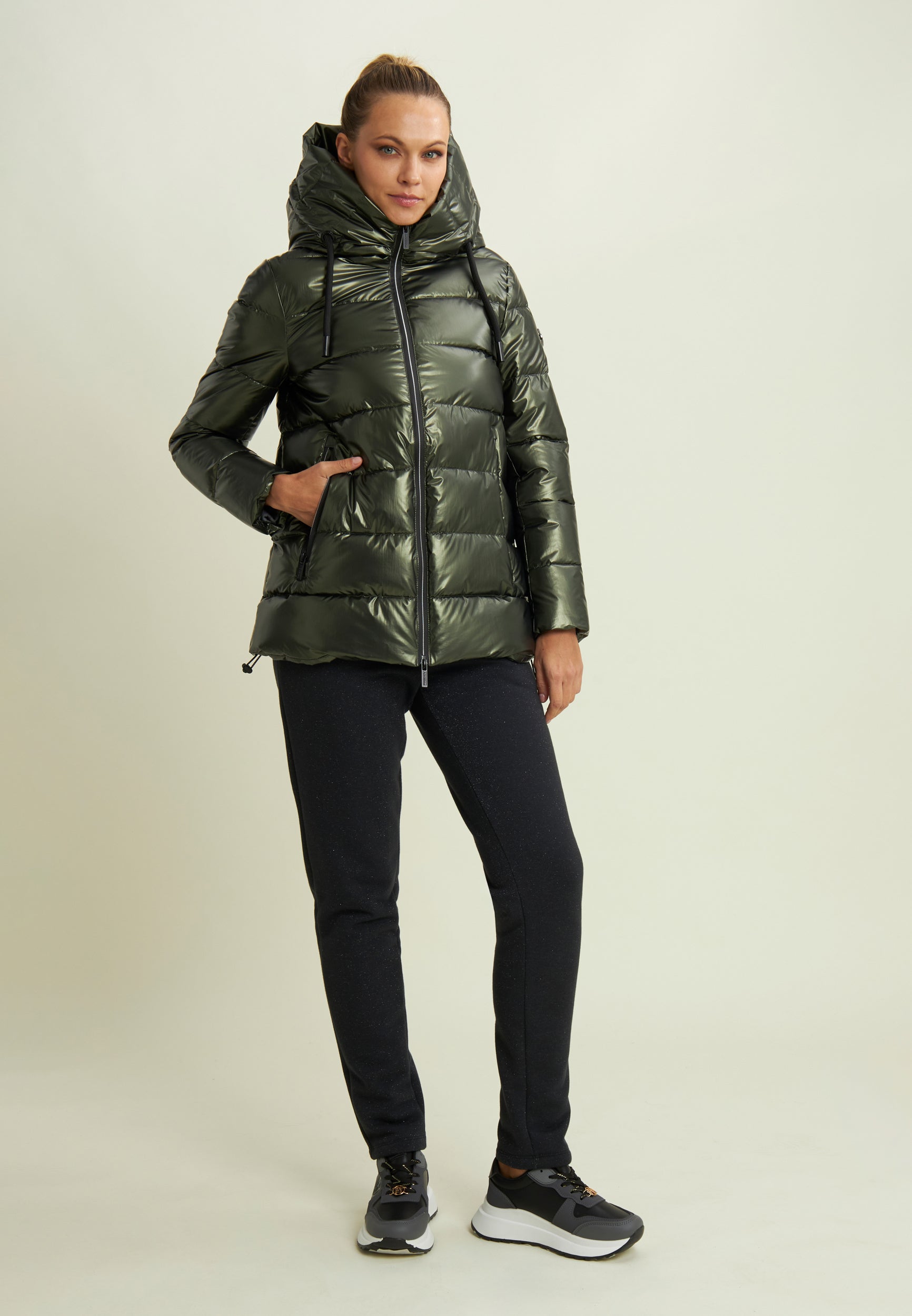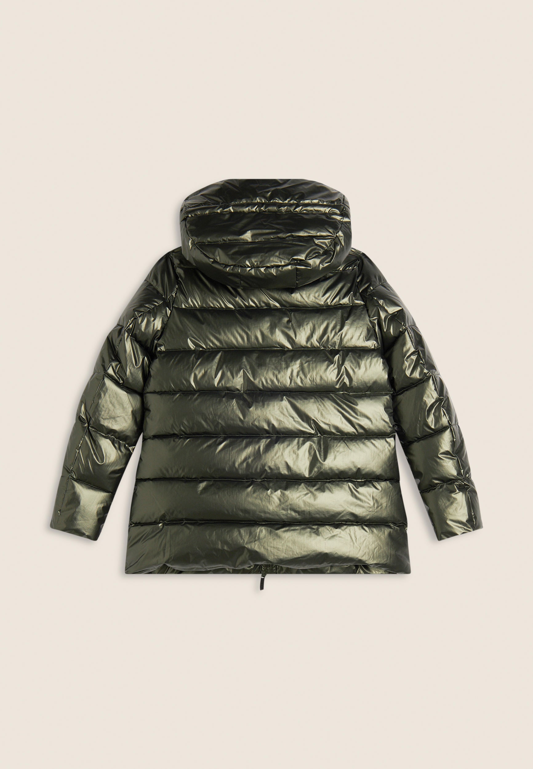 Piumino donna lucido con cappuccio protettivo e coulisse