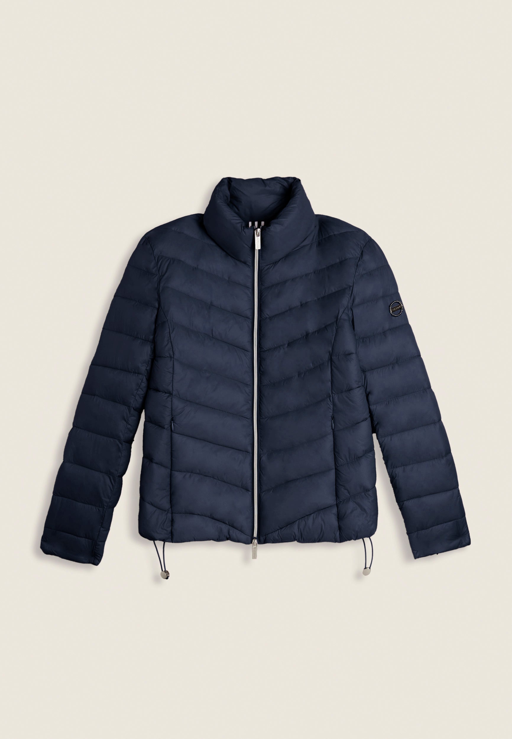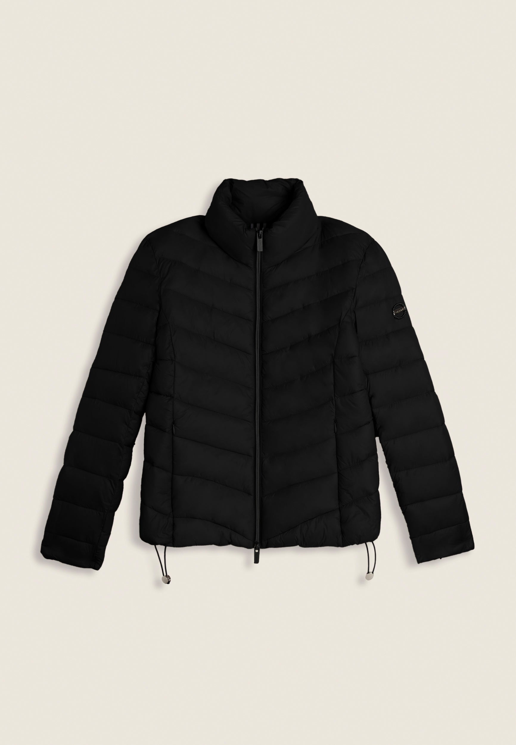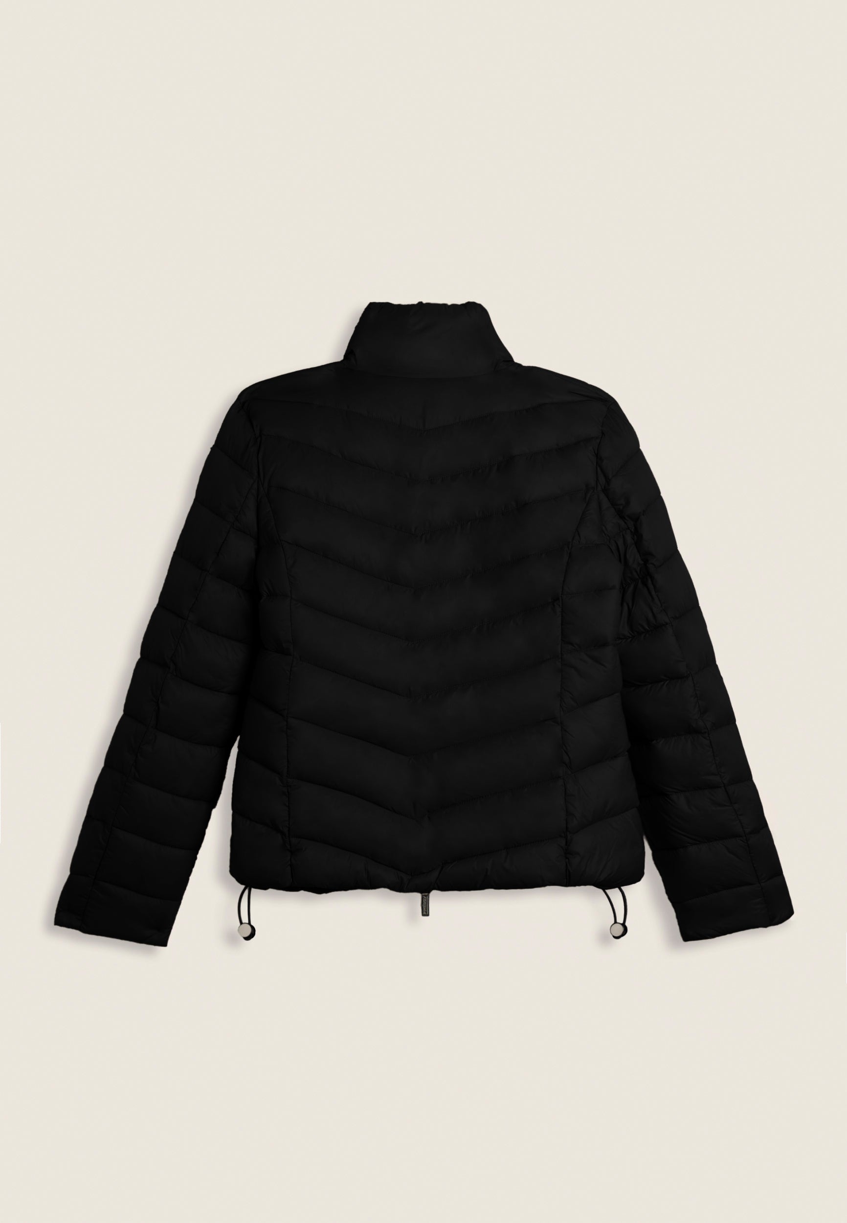 Piumino donna a bande orizzontali con vestibilità regular e lunghezza appena sotto al punto vita, perfetto per accompagnarti nelle giornate più fredde. Il collo alto e la chiusura full zip con doppio cursore garantiscono una protezione ottimale dal freddo. Il fondo regolabile con coulisse consente di personalizzare il fit. Esterno in nylon lucido con trattamento water repellent e imbottitura in fake-down animal-friendly, calda e performante anche in condizioni umide. Completano il look i dettagli femminili come il logo con strass sulla manica sinistra e le pratiche tasche frontali con zip.