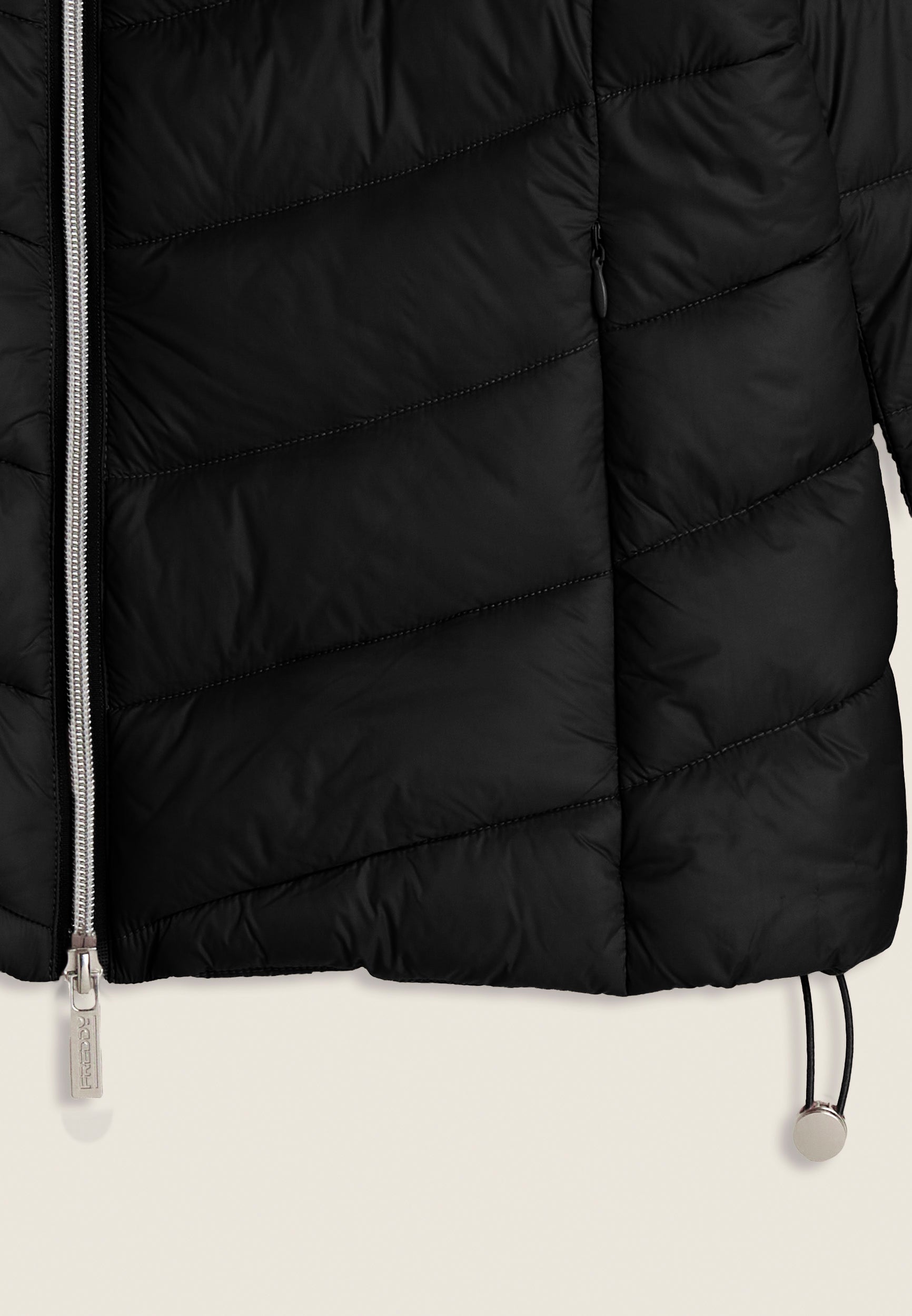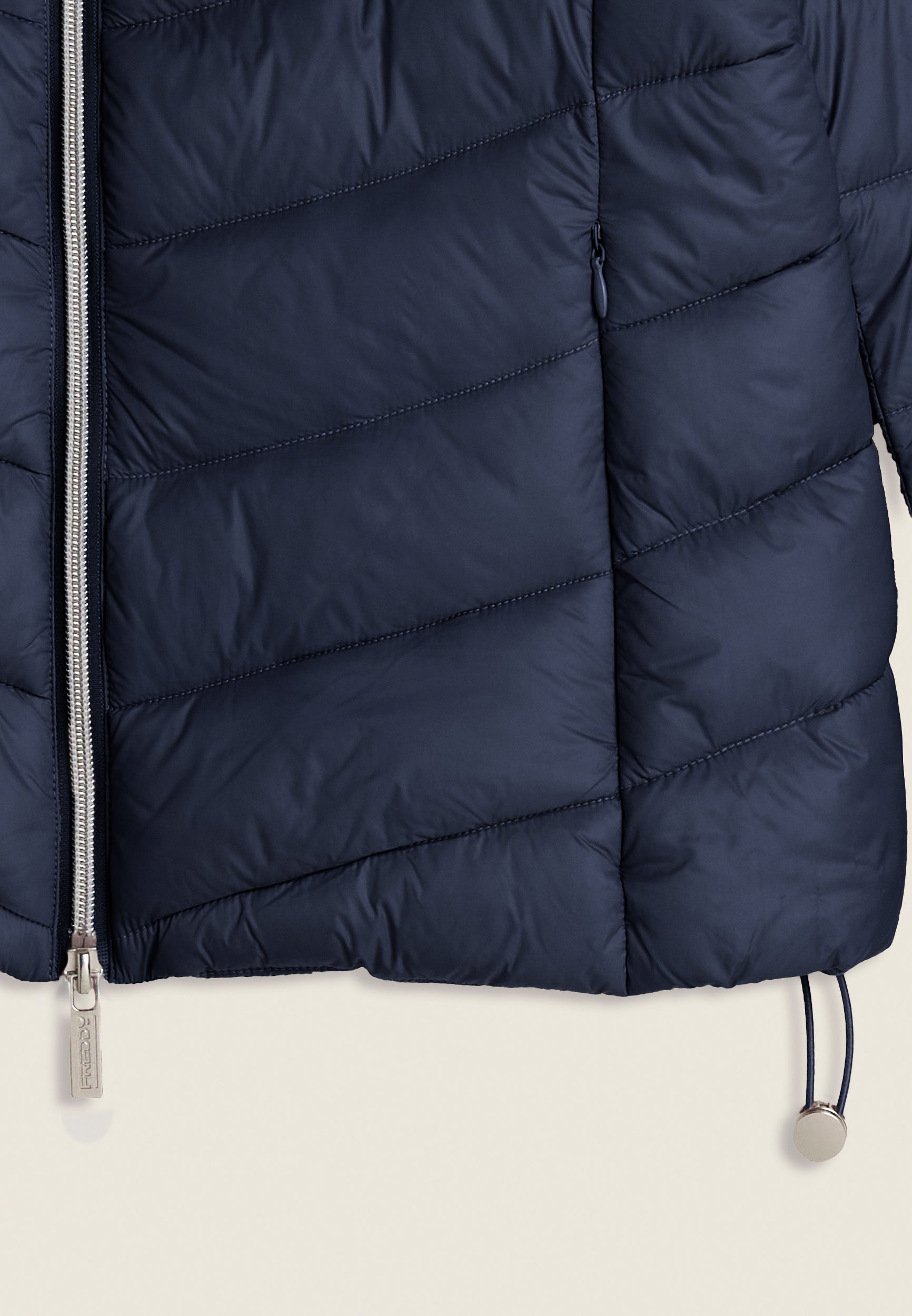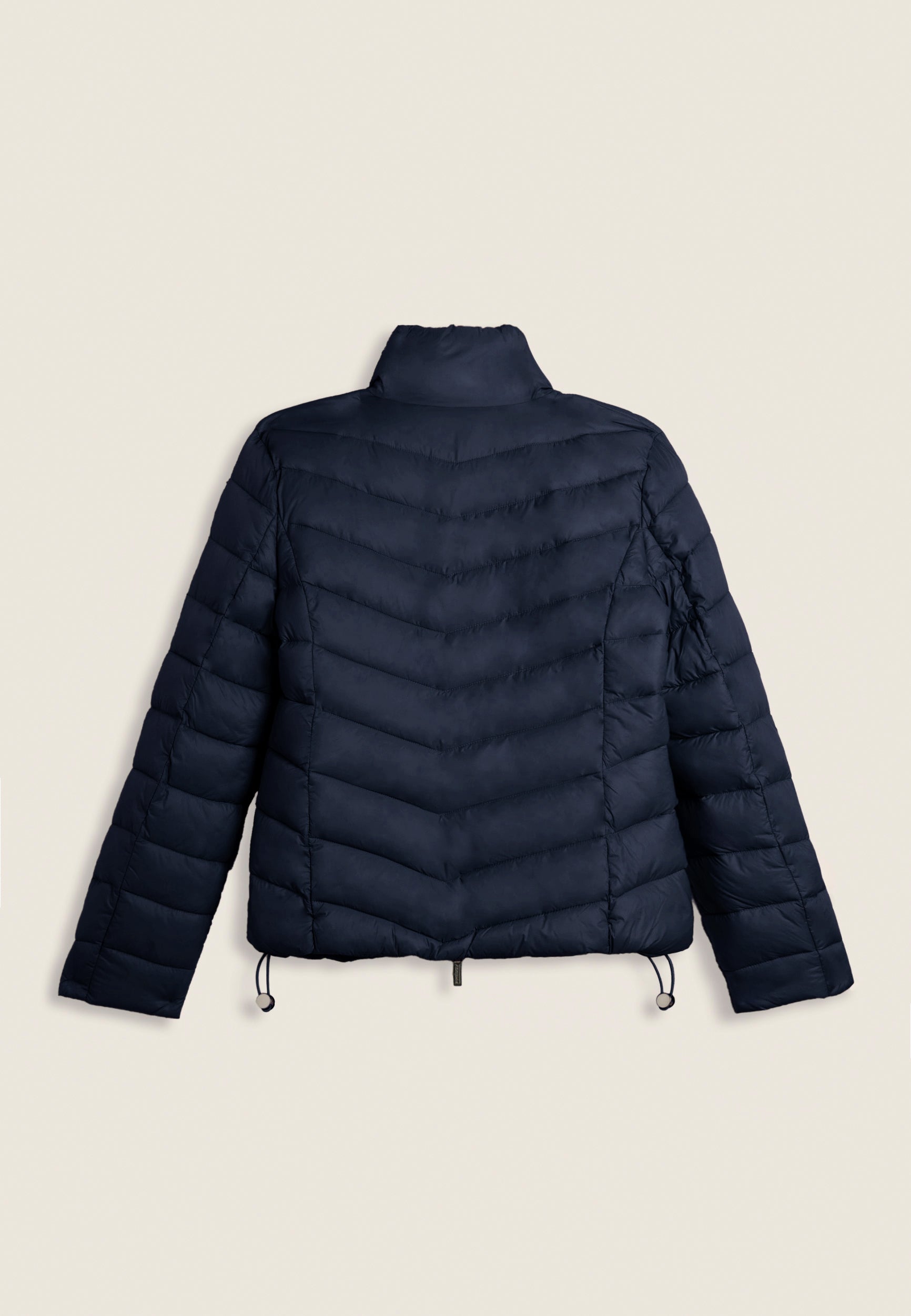 Piumino donna a bande orizzontali con vestibilità regular e lunghezza appena sotto al punto vita, perfetto per accompagnarti nelle giornate più fredde. Il collo alto e la chiusura full zip con doppio cursore garantiscono una protezione ottimale dal freddo. Il fondo regolabile con coulisse consente di personalizzare il fit. Esterno in nylon lucido con trattamento water repellent e imbottitura in fake-down animal-friendly, calda e performante anche in condizioni umide. Completano il look i dettagli femminili come il logo con strass sulla manica sinistra e le pratiche tasche frontali con zip.