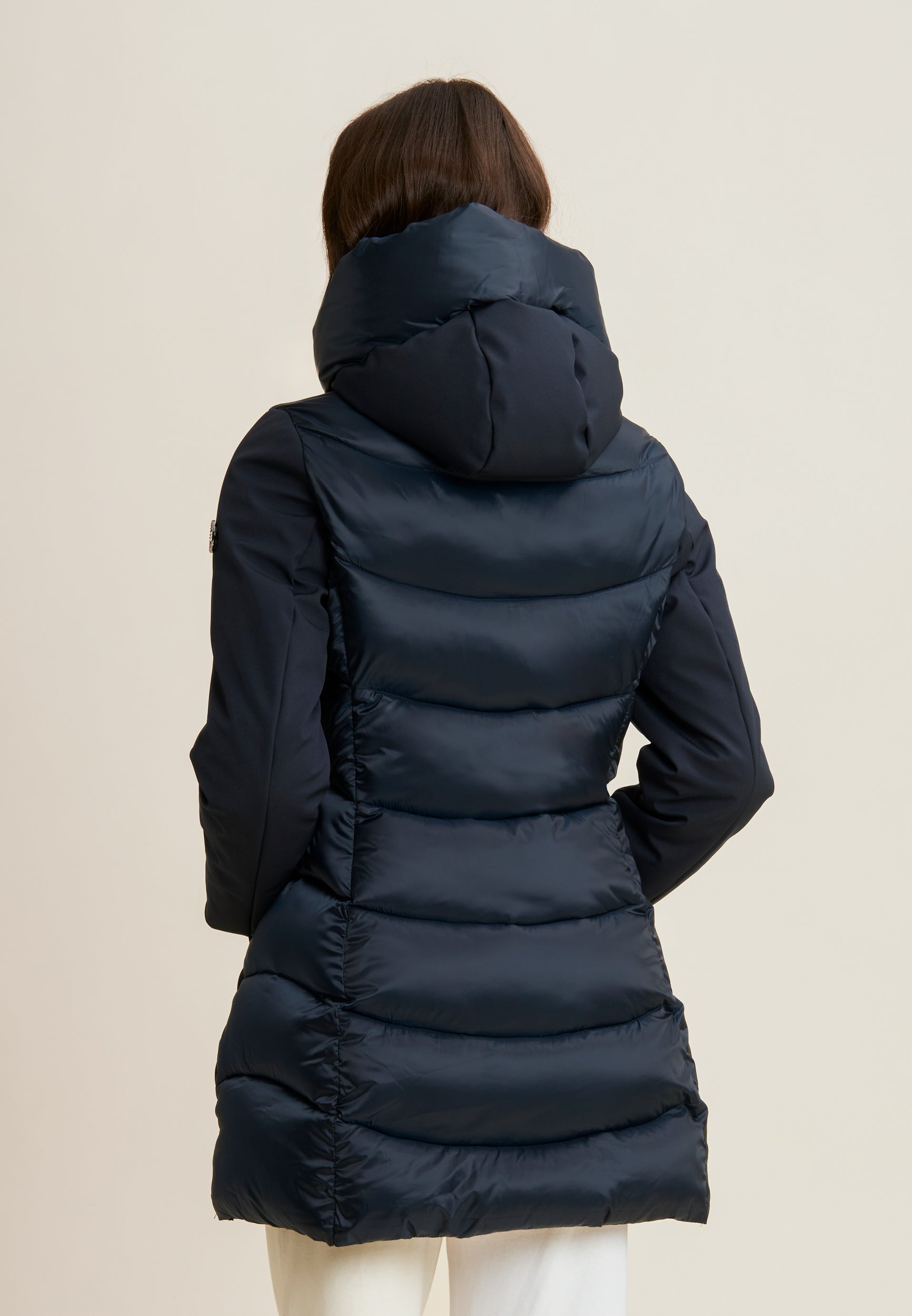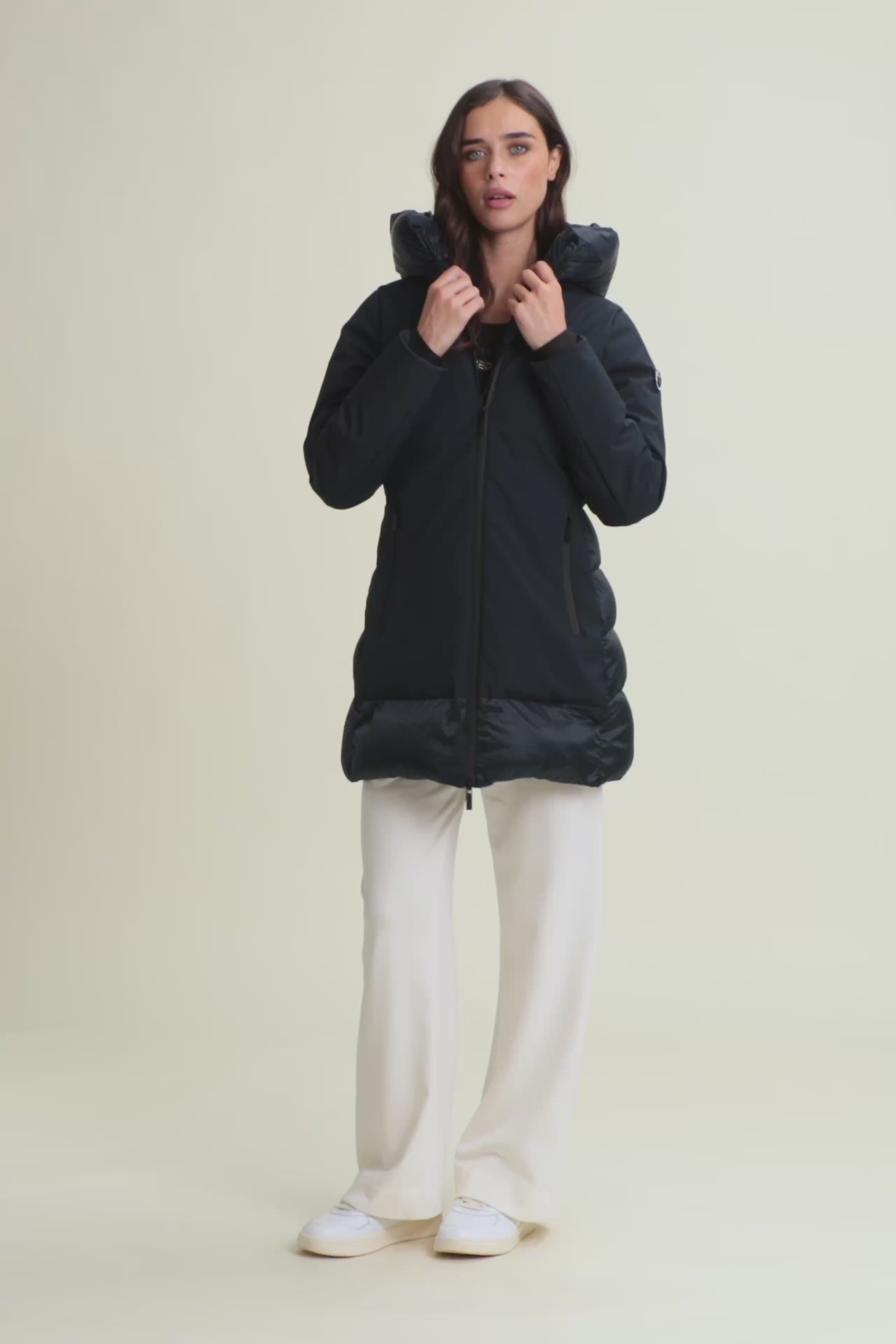 Piumino lungo donna opaco e lucido con cappuccio