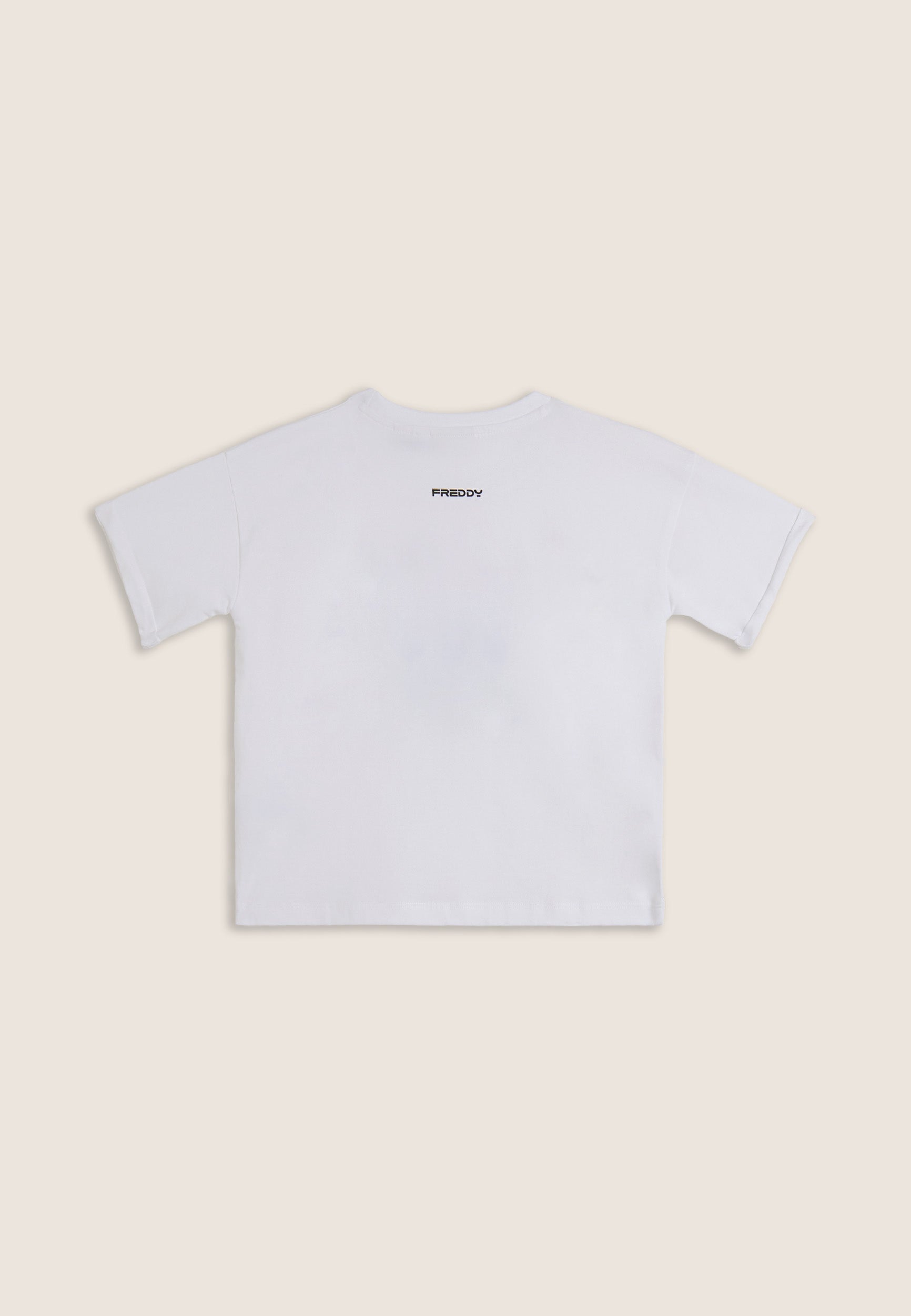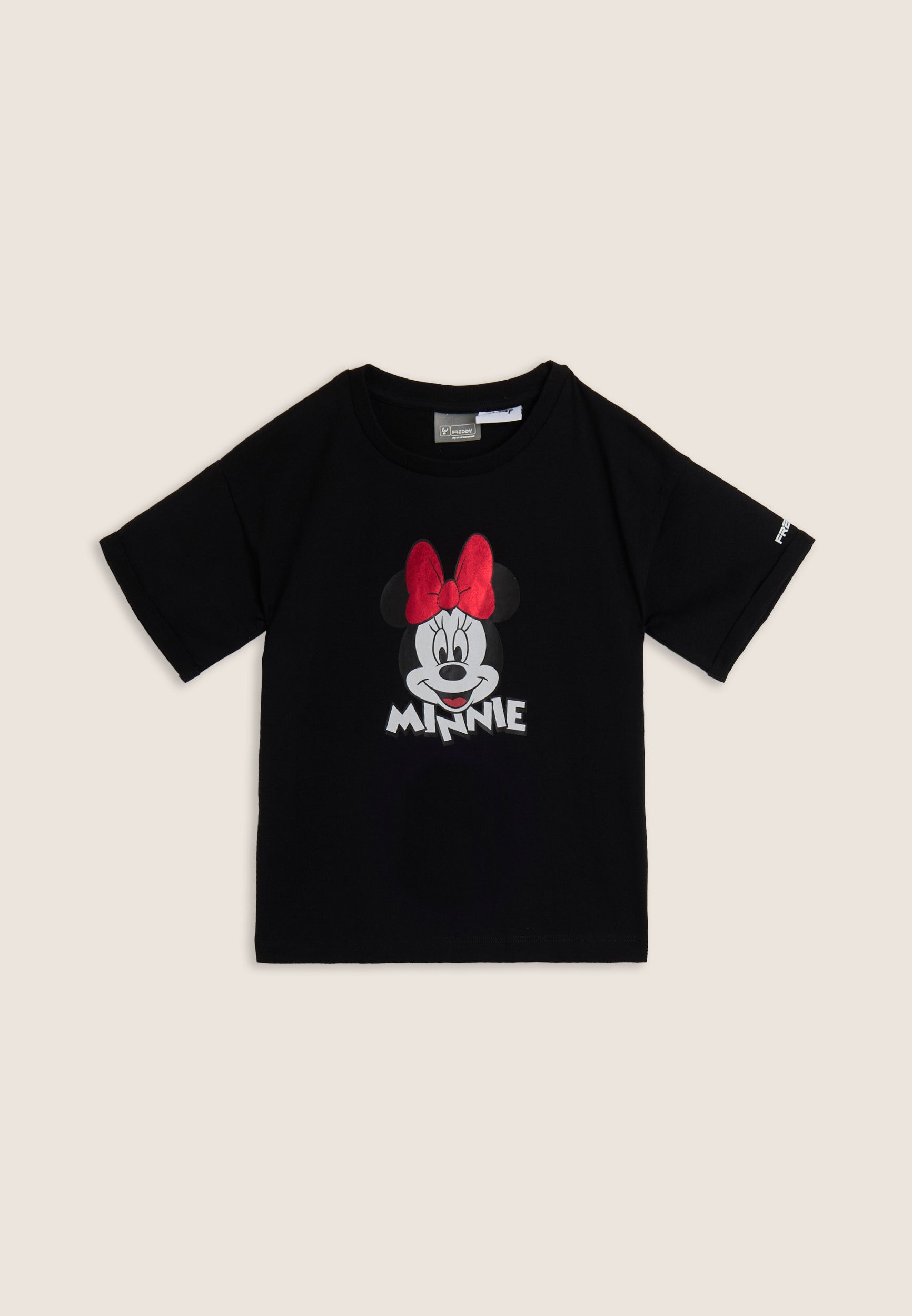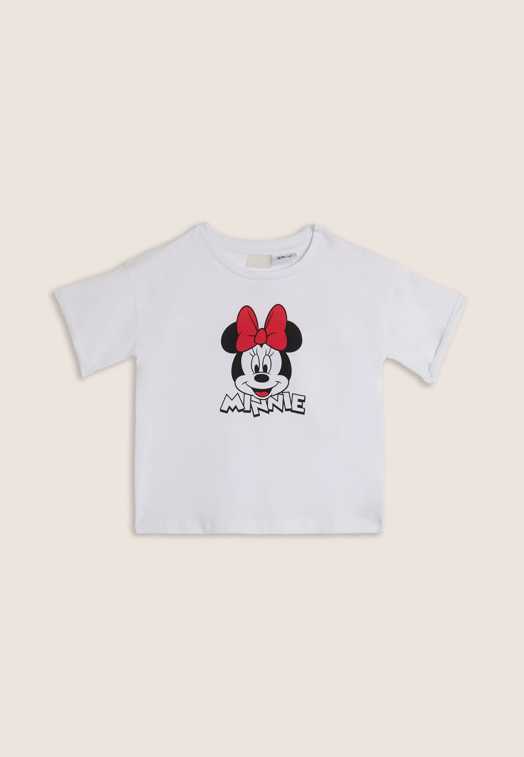 Un capo perfetto per le amanti di Minnie! Questa t-shirt comfort fit in cotone elasticizzato ha una lunghezza regular con fondo dritto per una vestibilità comoda. Il design con scollo girocollo e maniche corte con spalla scesa la rende versatile, mentre la grande stampa a colori del volto di Minnie sul fronte aggiunge un tocco allegro e vivace.