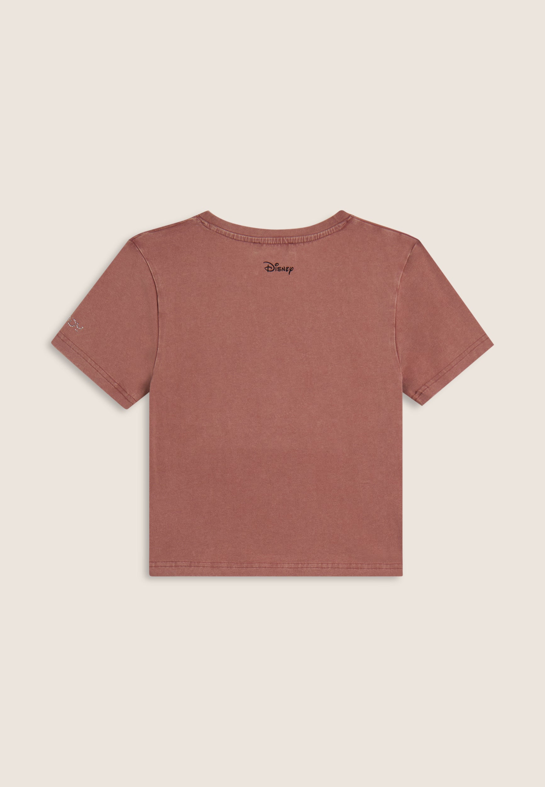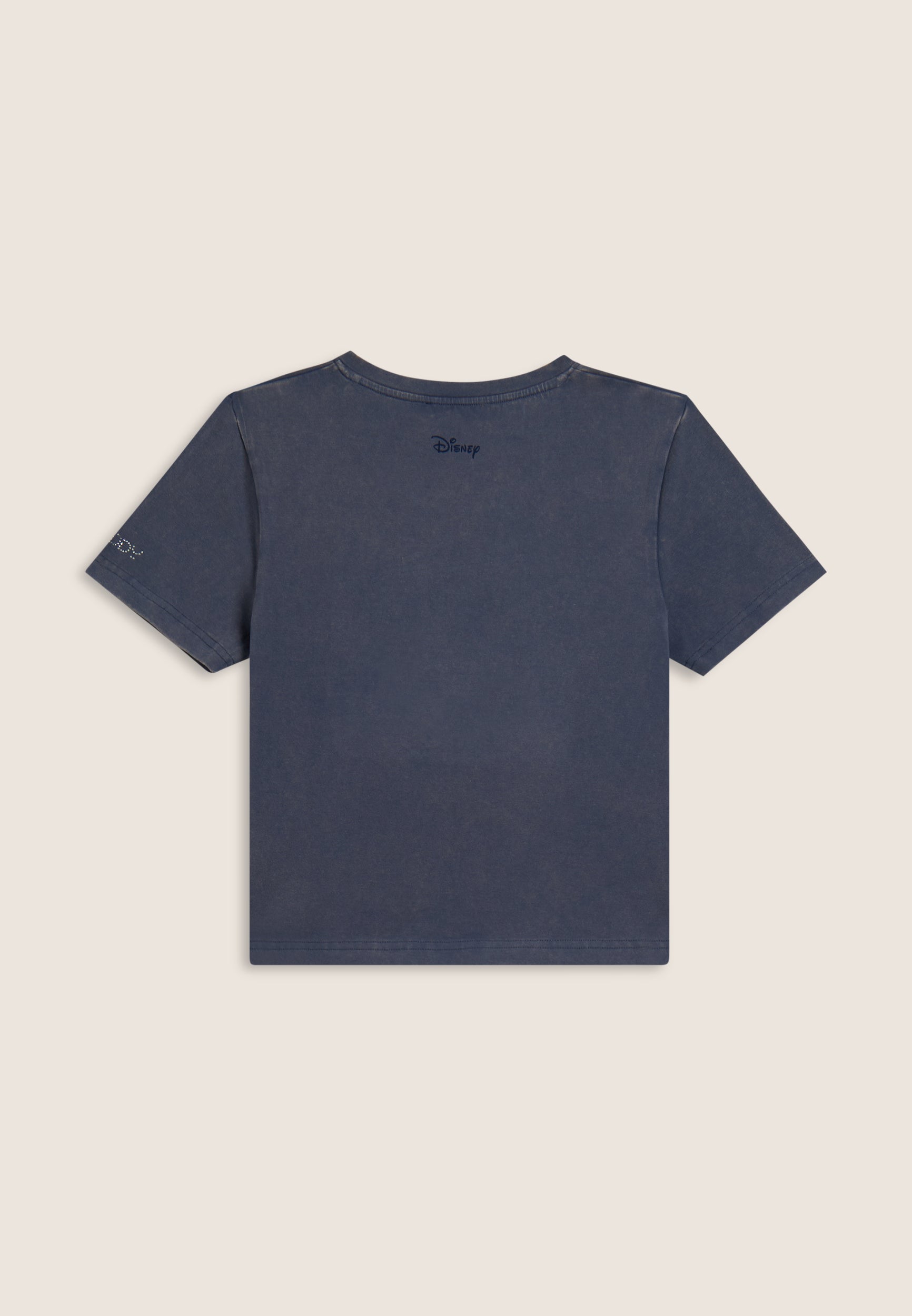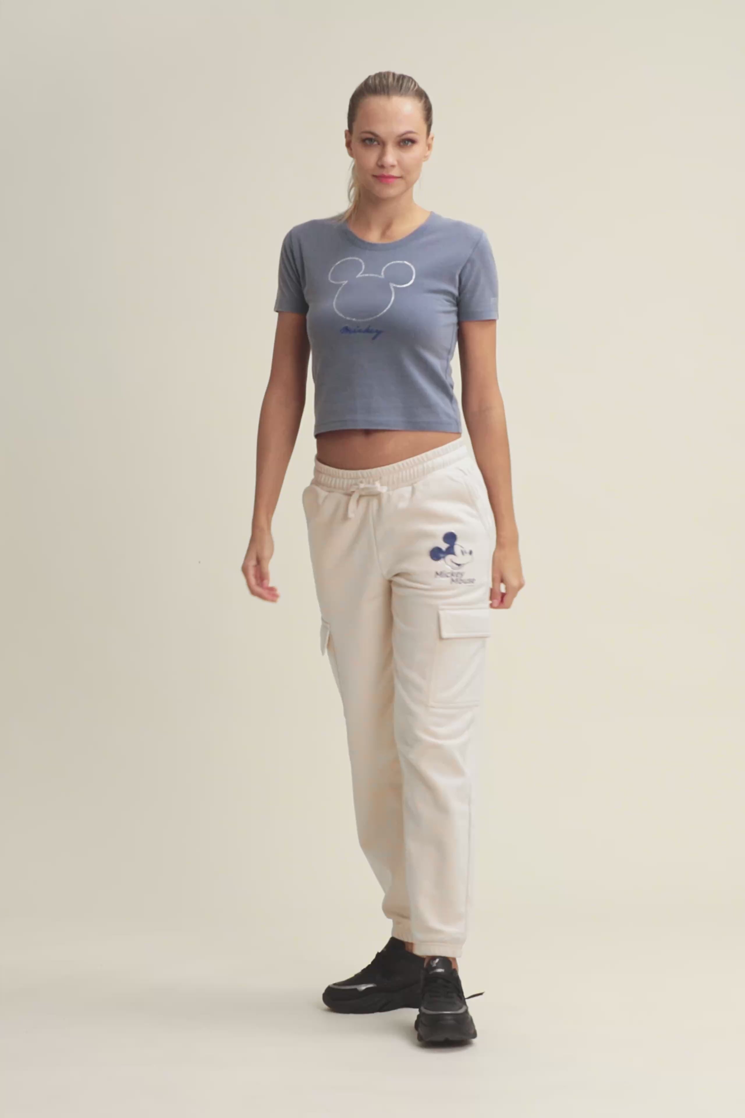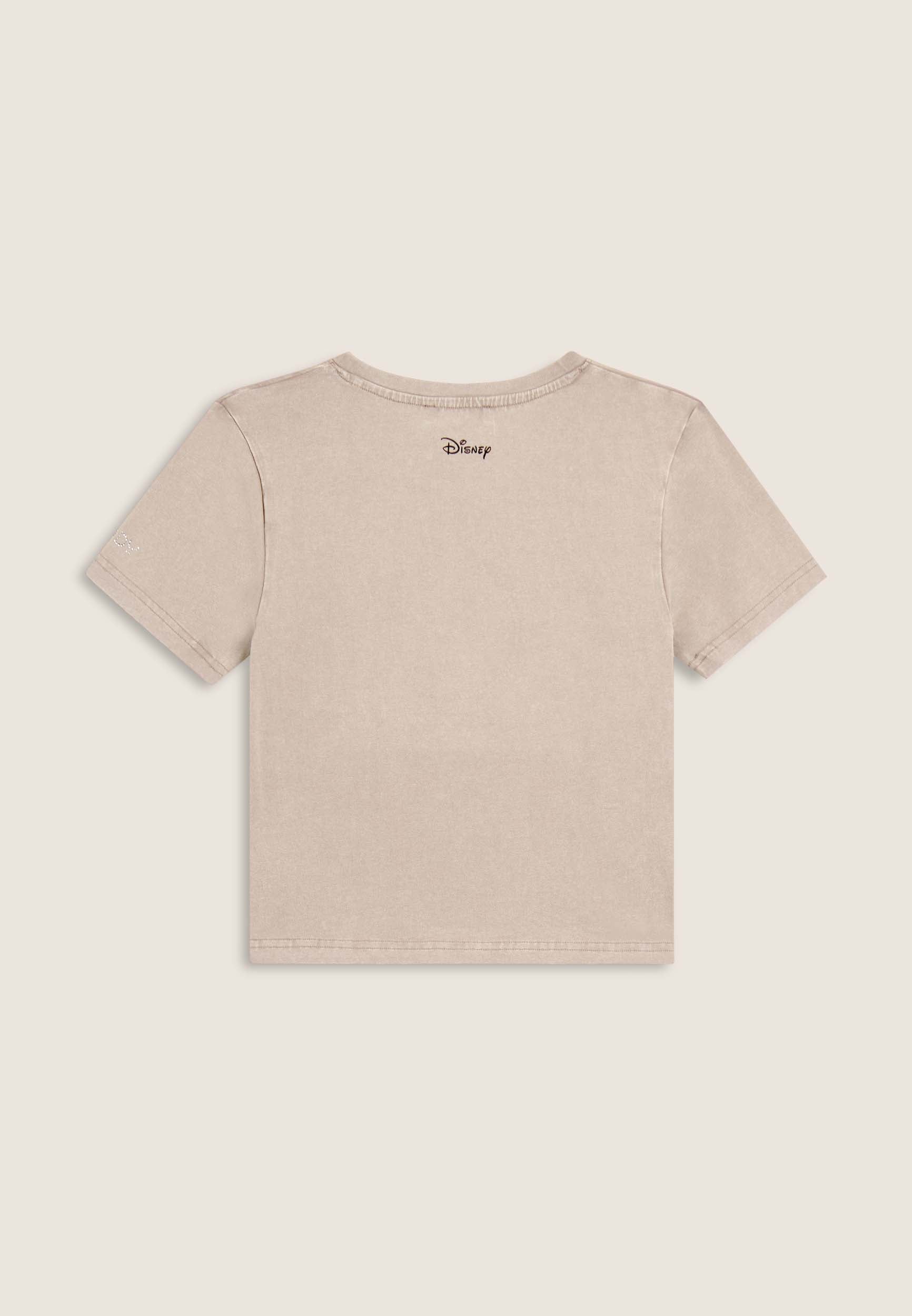 T-shirt da donna cropped, realizzata in jersey di cotone elasticizzato con trattamento acid wash effect, che dona un aspetto vissuto e sfumature di colore uniche. Il taglio è slim, con fondo dritto, scollo tondo e maniche corte. La grande grafica frontale composta da strass raffigura Mickey Mouse, mentre il retro è firmato da un piccolo logo Disney e il logo FREDDY compare sul fondo manica.