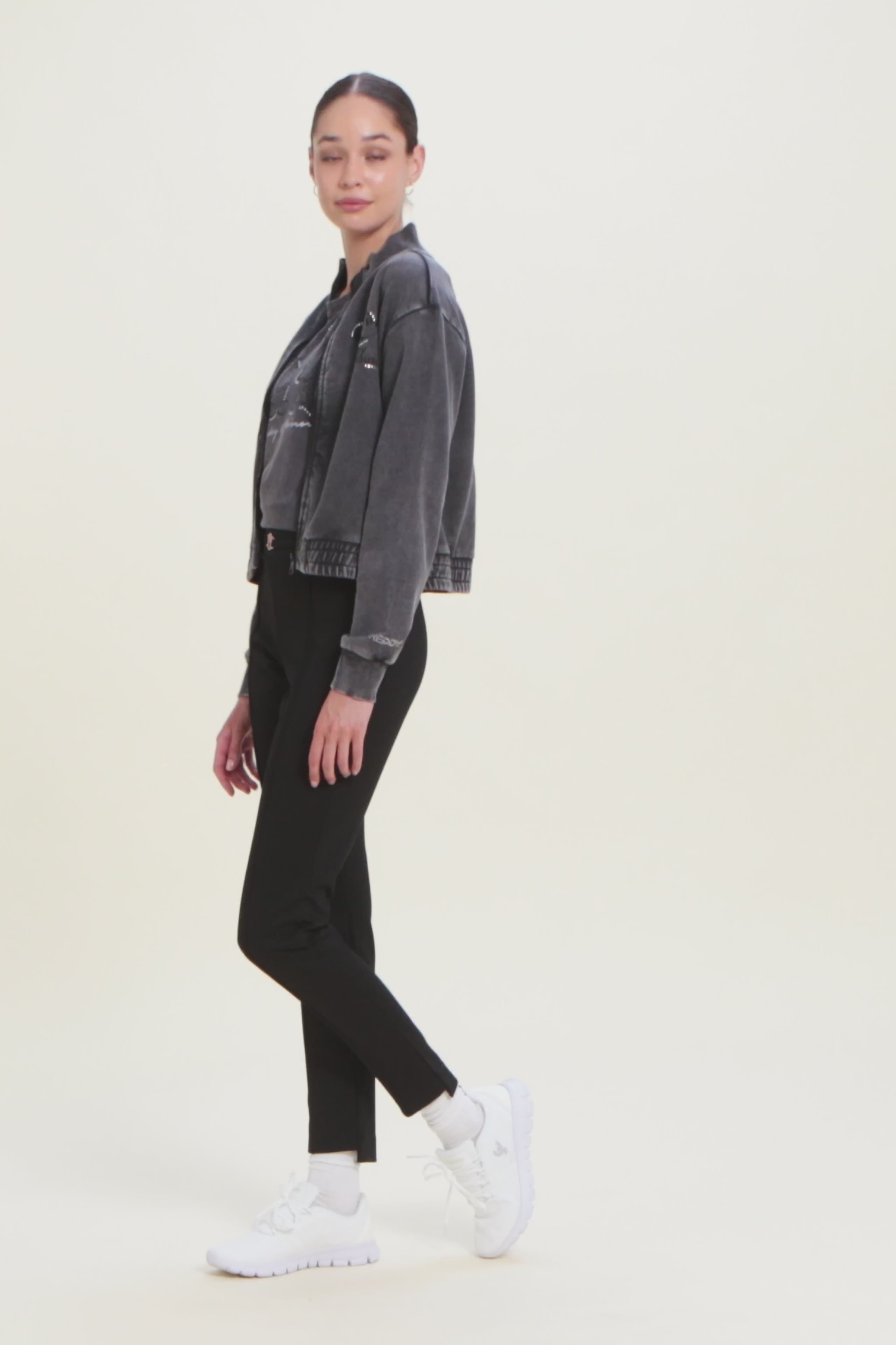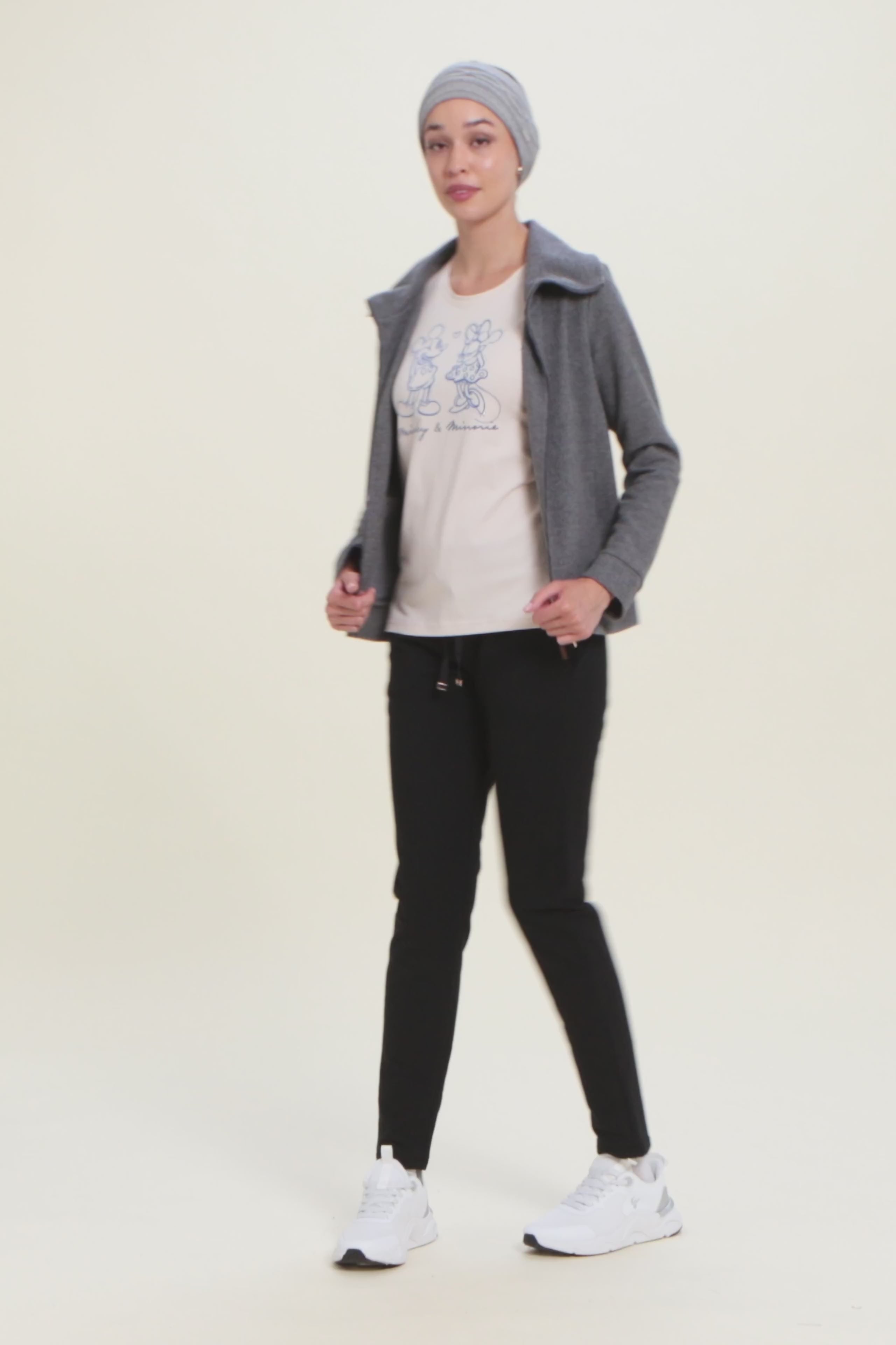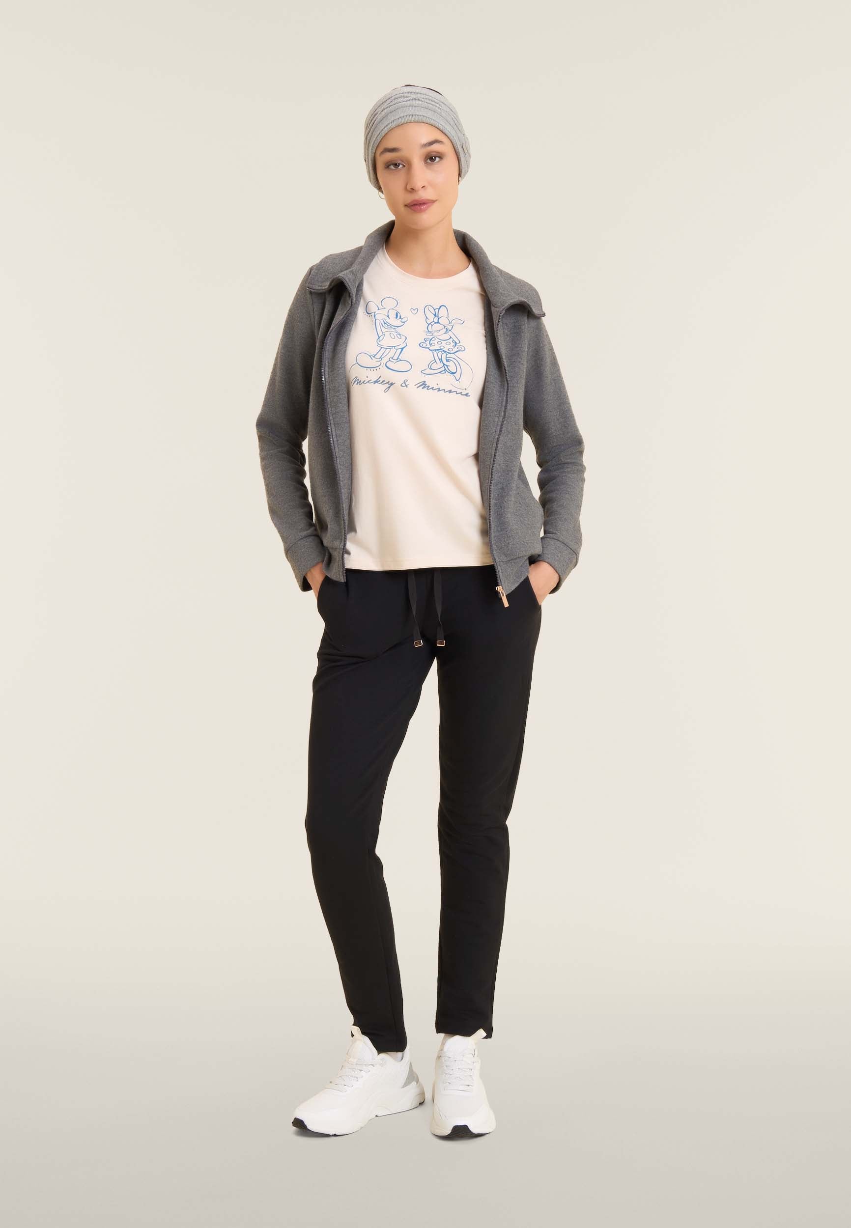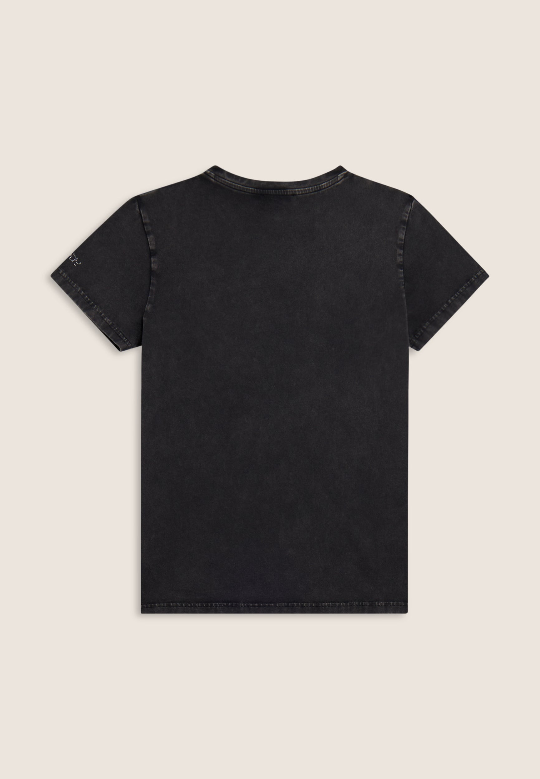 Con vestibilità regular e taglio classico, questa T-shirt da donna è in jersey di cotone elasticizzato con trattamento acid wash effect per un look leggermente scolorito e urban. Lo scollo è tondo, le maniche corte. Sul fronte spicca una grande grafica di Minnie e Mickey Mouse decorata da strass, mentre il retro ospita un logo Disney discreto. Logo FREDDY sul fondo manica.