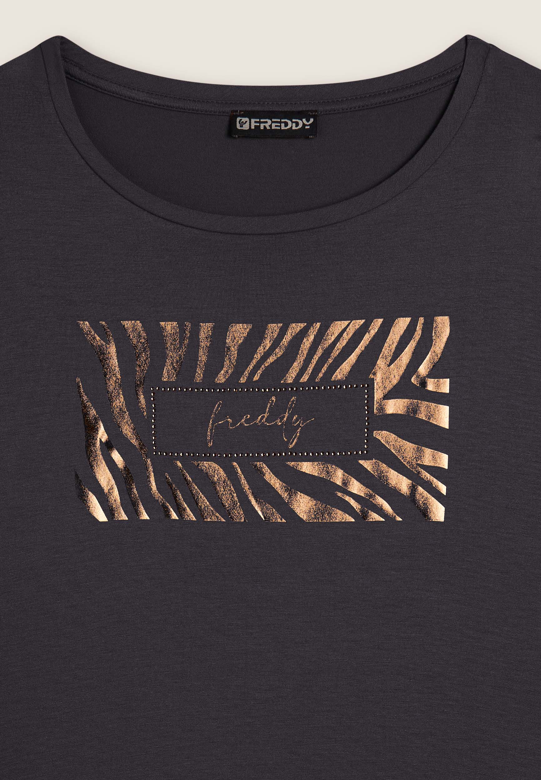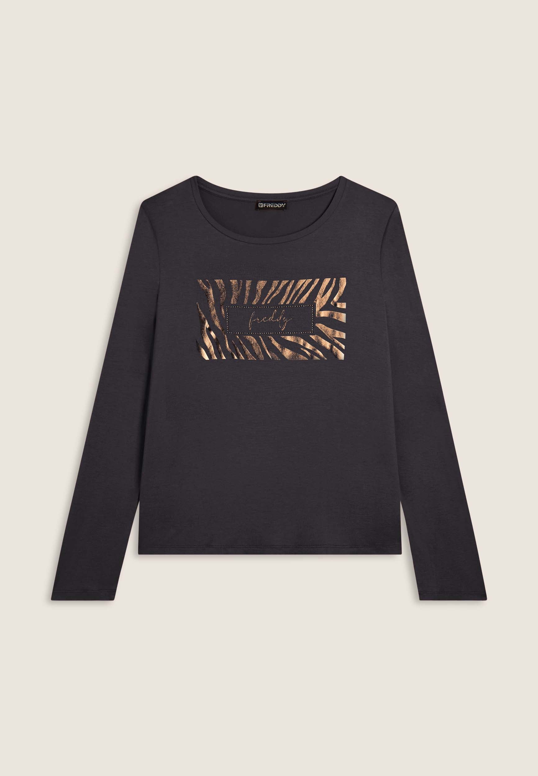 T-shirt da donna a manica lunga con logo metallizzato decorato da strass. Realizzata in jersey viscosa elasticizzato per una vestibilità comoda e femminile.