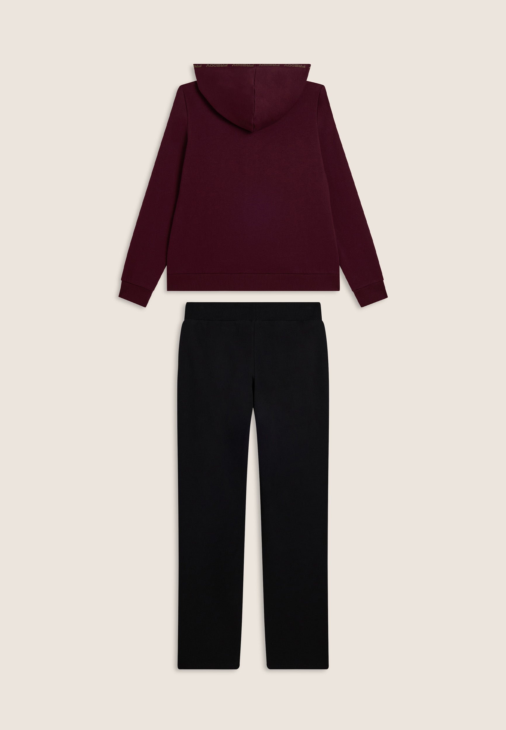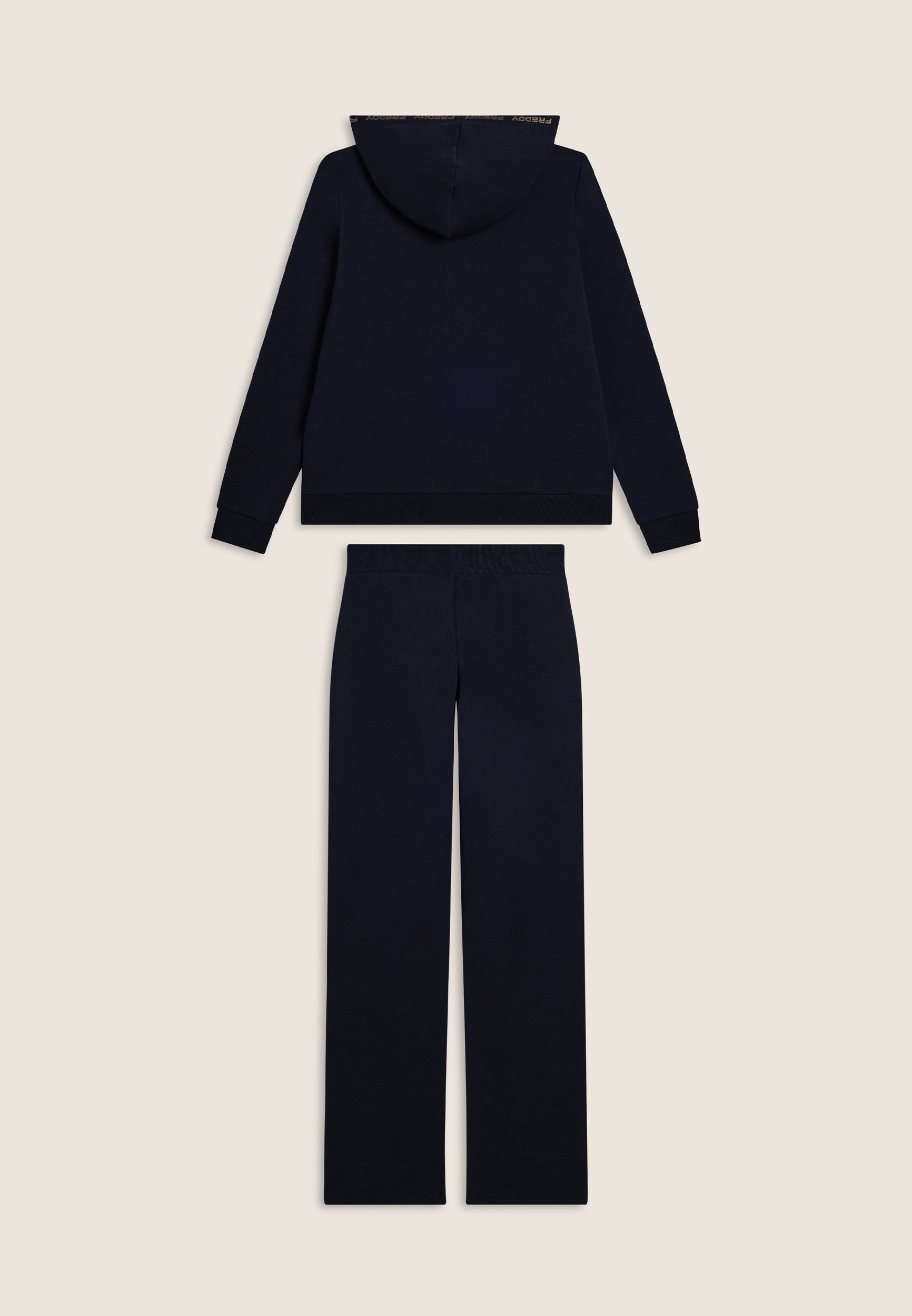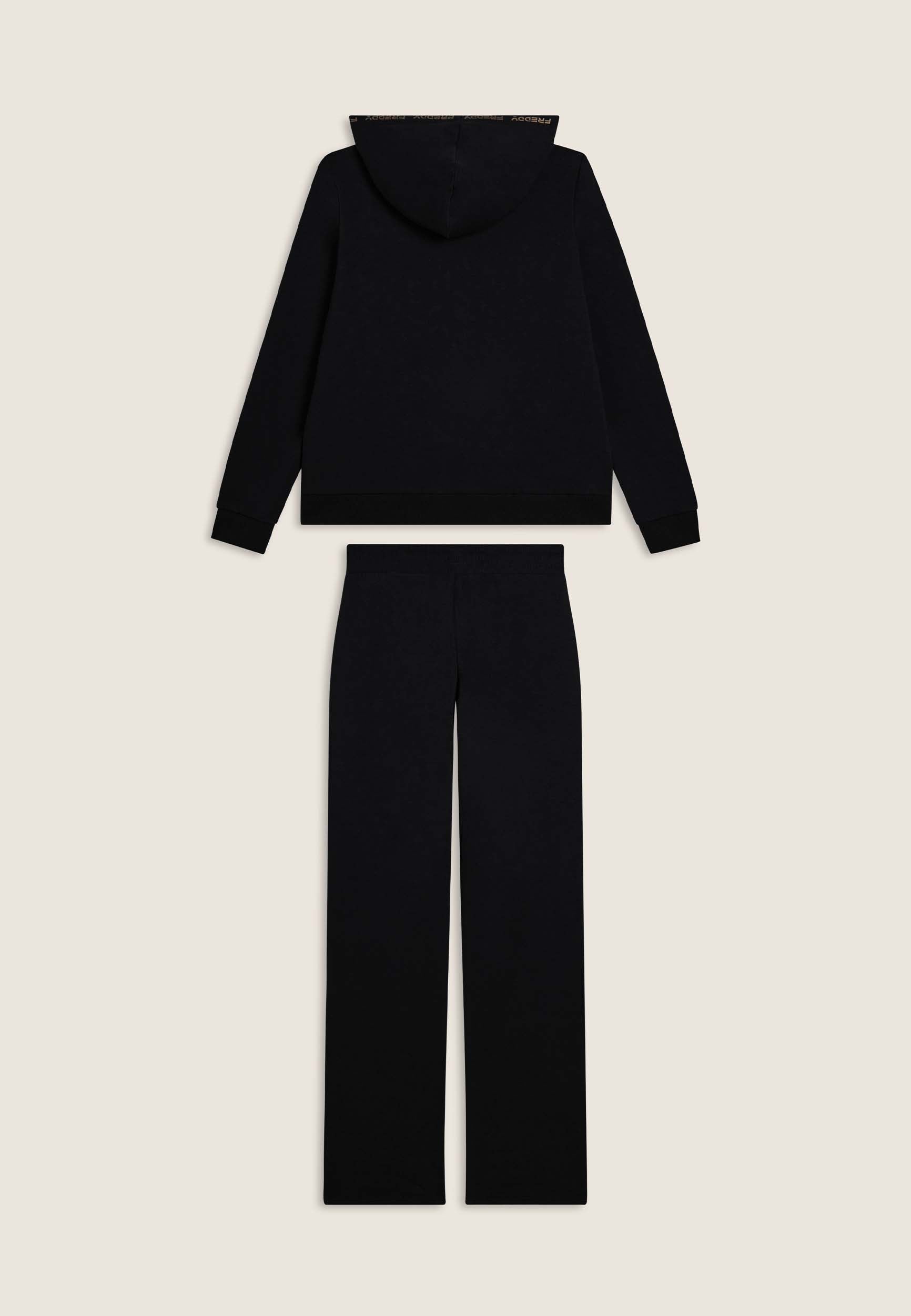 Tuta con cappuccio decorato da logo dorato a contrasto